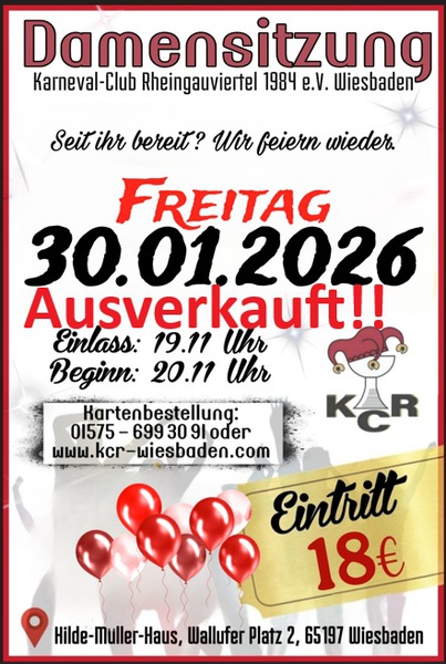 01.02.2019 - Wir, der KCR Wiesbaden, möchten uns für eine grandiose Damensitzung bedanken. Wir haben das Hilde-Müller-Haus zum Beben gebracht. Liebe Damen wir bedanken uns, dass ihr so ein geiles Publikum wart.